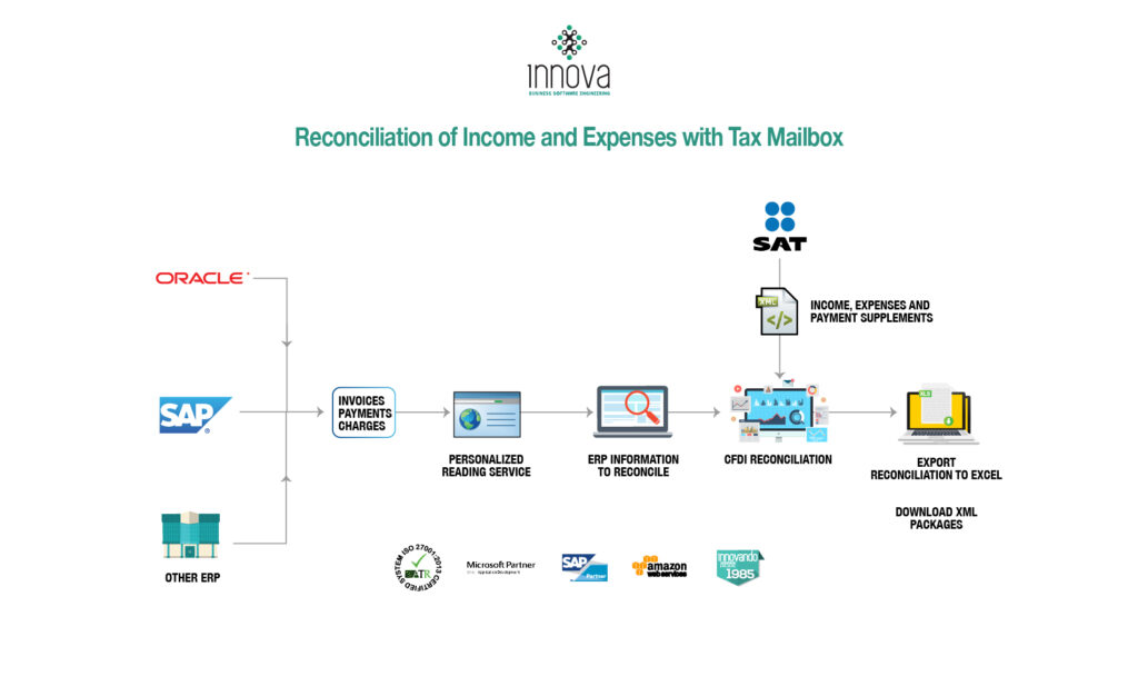 A solution designed to validate issued and received CFDIs directly with the SAT tax mailbox. Automatically download missing CFDIs into your ERP and ensure accurate reconciliation of amounts — boosting efficiency, accuracy, and compliance.