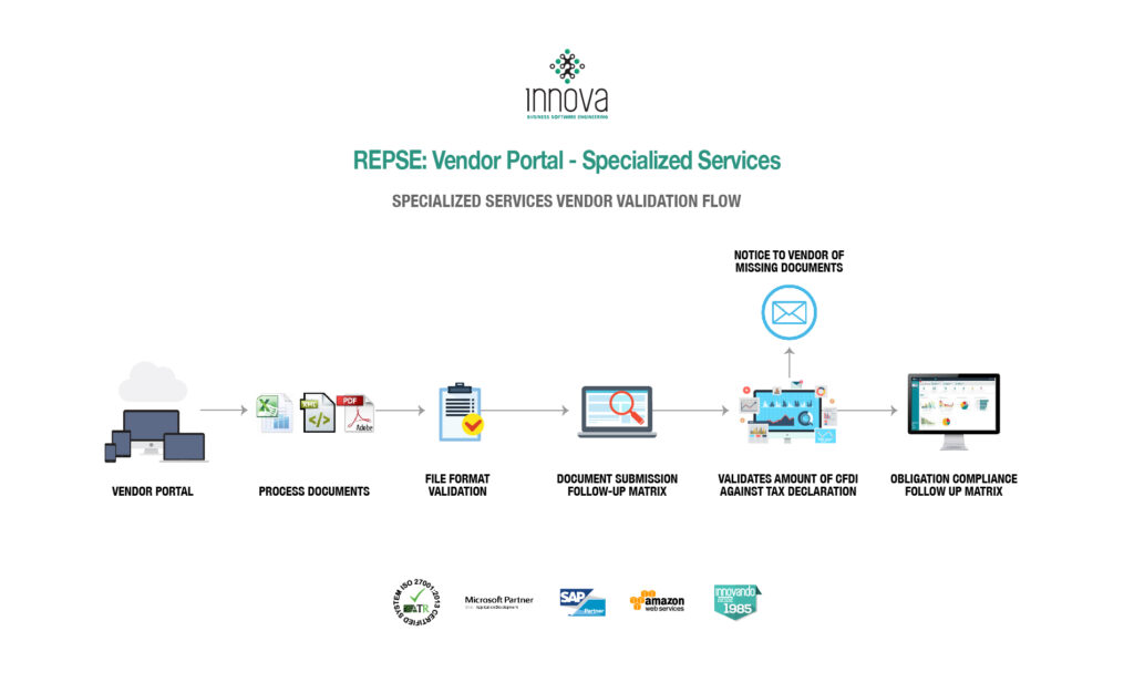 Web portal that handles all workload for monitoring Specialized Service Providers. It allows you to collect suppliers’ invoices online while applying fiscal and administrative validations. Automatically sends emails to delinquent suppliers indicating missing documents and due dates.