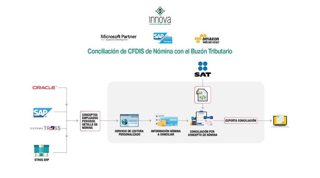 Solución compatible con cualquier sistema de Nómina para validación de CFDIS emitidos con el buzón tributario. Realiza la conciliación de importes a nivel de concepto de cálculo.